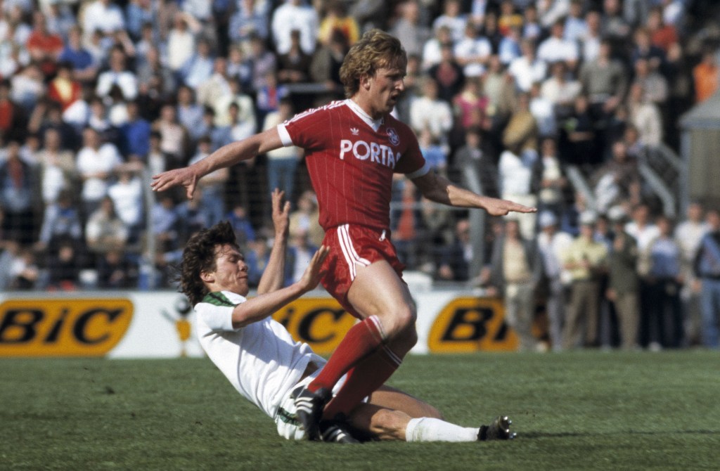 Im Bundesliga-Spiel der Saison 1983/1984 zwischen Borussia Mönchengladbach und dem 1. FC Kaiserslautern im Stadion am Bökelberg kam es zu einer interessanten Szene. Andreas Brehme von Kaiserslautern und Lothar Matthäus von Mönchengladbach waren in einen Zweikampf verwickelt. Das Spiel endete knapp mit einem 3:2-Sieg für Mönchengladbach.Fußball, Bundesliga, 1983/1984, Stadion am Bökelberg, Borussia Mönchengladbach gegen 1. FC Kaiserslautern 3:2, Spielszene, Andreas Brehme (FCK) rechts und Frank Mill (BMG).Fußball, Bundesliga, 1983/1984, Stadion am Bökelberg, Borussia Mönchengladbach gegen 1. FC Kaiserslautern 3:2, Spielszene, Andreas Brehme (FCK) links und Ulrich Borowka (BMG).Fußball, Bundesliga, 1981/1982, im Rheinstadion: Während des Spiels zwischen Fortuna Düsseldorf und dem 1. FC Kaiserslautern fiel besonders Andreas Brehme auf. Er war aktiv in die Spielszenen involviert und agierte entschlossen für sein Team. Diese Szene mit Brehme verdeutlichte die Intensität und den Wettbewerb dieses Bundesliga-Matches.Ottmar Hitzfeld, Fussballtrainer bei Borussia Dortmund, mit Brehme, damals Aussenverteidiger beim 1. FC Kaiserslautern als Gäste auf einer Feier, circa 1996.10 Jahre Sport Bild, 1998, Gäste bei der Feier: Ex Fussballer Uwe Seeler und Andi Brehme mit Fussballtrainer Ottmar Hitzfeld, Mitte.
