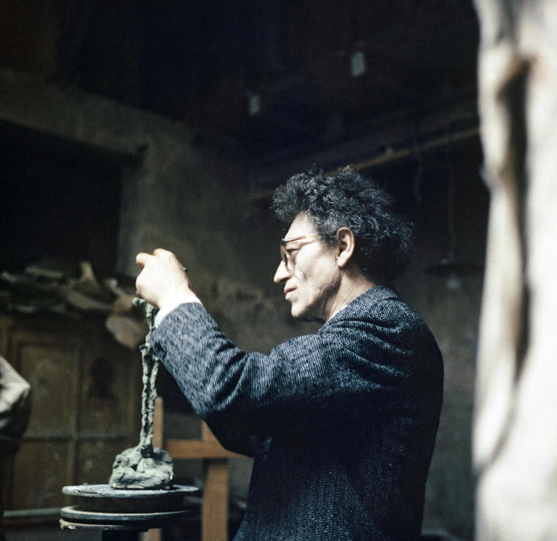 Alberto Giacometti modeled with his hands on an unfinished sculpture,