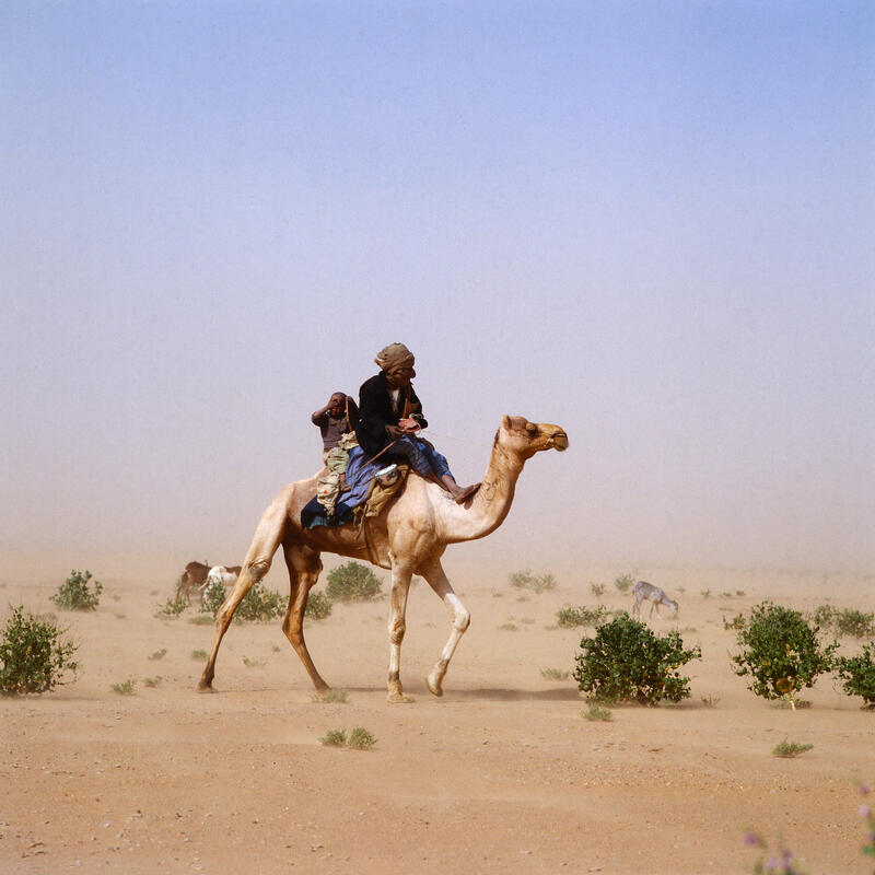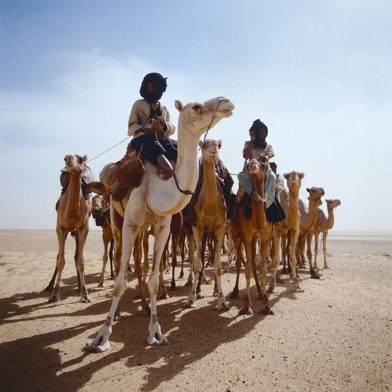 Tuareg-Nomade um 1984.Ein Mann der Tuareg beim Gebet in der Sahara um 1984.nomaden auf Kamelen in der Sahara um 1984.90 kilometer entfert von Arak in der mittleren Sahara, Algerien um 1984.Ein Tuareg mit Trinkbehälter in der Sahara um 1984.Fischer auf dem Wasser bei Lomé, Togo um 1984.Jeep im Seitenspiegel während eines Staubsturms bei einer Saharadurchquerung um 1984.Kinder vor einem Haus in Aguelhok, Mali um 1984.Ein Tuareg und sein Kind auf dem Rücken eines Kamel während eines Staubsturms in der Sahara um 1984