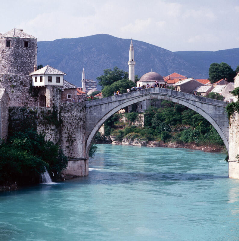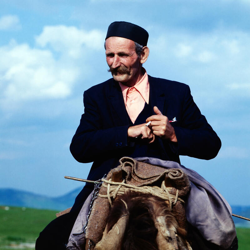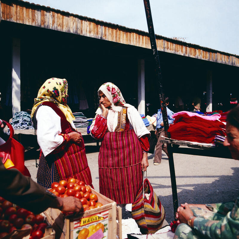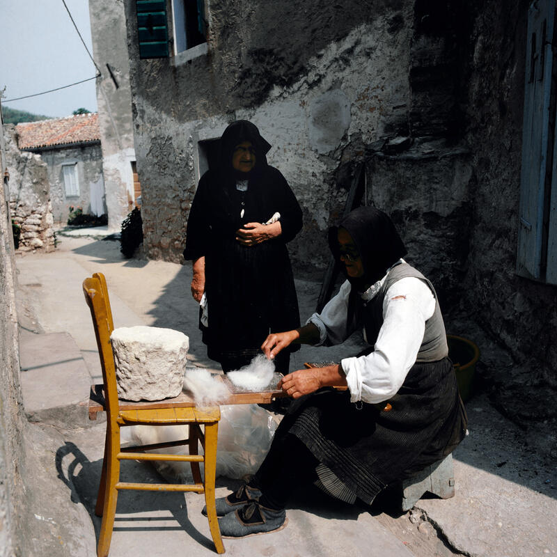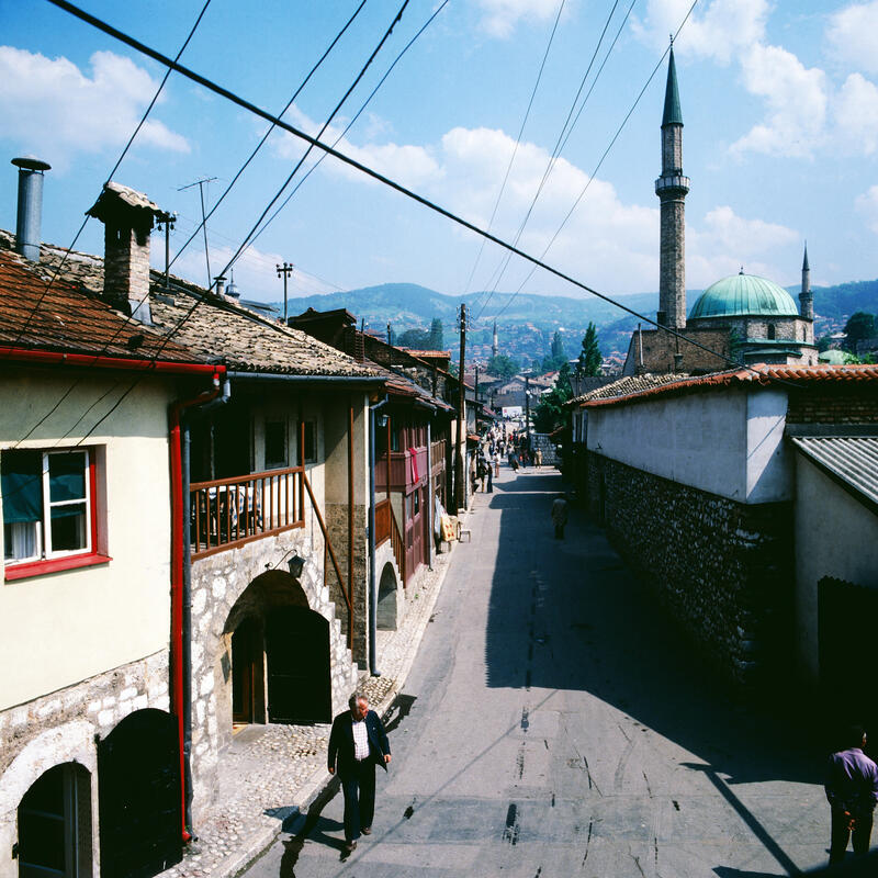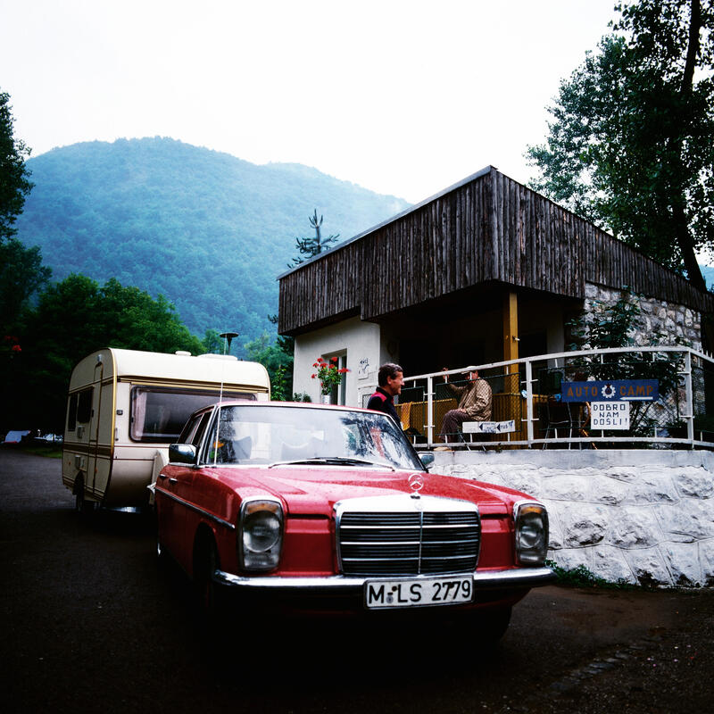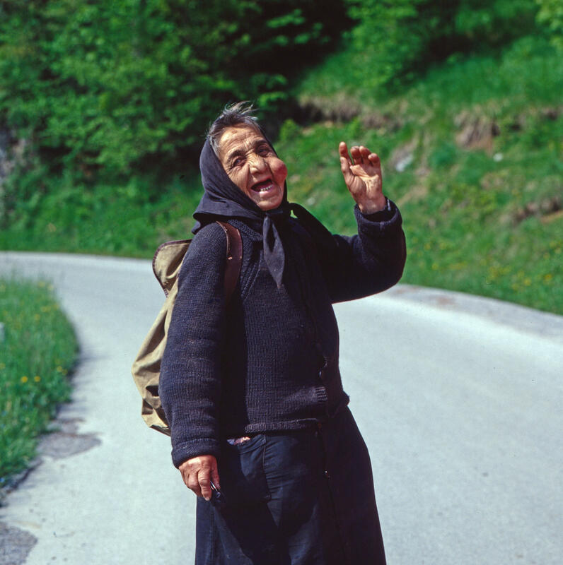 Frauen auf einem Markt in Struga am Ohridsee in Nordmazedonien, Jugoslawien um 1981.Serbische Mönche des Kloster Vracevsnica (Vraćevšnica) in Serbien, Jugoslawien um 1981.Der Mercedes Benz /8 und Wohnwagen von Fotografin Leonore Ander und ihrem Mann auf einem Campingplatz bei Ovcar Banja, Serbien, Jugoslawien um 1981.Montenegrinische Zwillinge (vermeintlich) zu Pferd und zu Fuß mit Regenschirm, Jugoslawien um 1981.Männer in makedonischer Tracht bei Kuchen und Tee sichtlich bei einem Fest in Montenegro, Jugoslawien um 1981.Alter Montenegriner auf einem Pferd, Jugoslawien um 1981.Spinnerin in einer Gasse auf der Insel Susak in Kroatien, Jugoslawien um 1981.Ein Hirte mit seiner Schafherde auf einer Landstraße zwischen Rozaje (Rožaje) in Montenegro und Peja im Kosovo; im Hintergrund der Mercedes Benz /8 und Wohnwagen von Fotografin Leonore Ander und ihrem Mann, um 1981.Bäuerein in Bosnien, Jugoslawien um 1981.Sinti und Roma mit Tanzbären bei Jajce, Bosnien, Jugoslawien um 1981.Spinnerin am Wegesrand bei Sarajevo in der Region Bosnien Herzegowina, Jugoslawien um 1981.Blick in die Altstadt und die Gazi Husrev-Beg Moschee von Sarajevo, Bosnien, Jugoslawien um 1981.Die Naretva-Schlucht bei Mostar Jugoslawien um 1981.Stari most, Brücke über die Neretva, Wahrzeichen der Stadt Mostar in Bosnien Herzogowina, Jugoslawien um 1981.Frauen mit ihrem Warenangebot auf dem Markt in Struga in der Region Mazedonien, Jugoslawien um 1981.Vieh- und Pferdemarkt in Struga am Ohridsee in der Region Mazedonien, Jugoslawien um 1981.Heim der Gewerkschaften auf dem Marx-Engels-Platz in Belgrad, Jugoslawien um 1981.Straßenverkehr im Zentrum von Belgrad, Jugoslawien um 1981.Auf der Autobahn in Richtung Belgrad, Jugoslawien um 1981.Mann beim Trocknen von Tabakblättern am Ufer vom Prespasee in der Region Mazedonien, Jugoslawien um 1981.Trachtenumzug durch die Straßen von Zagreb, hier: Paar in bosnischer Tracht, Jugoslawien um 1981.Alte Brücke über den Fluss Neretva in Mostar in der Region Bosnien, Jugoslawien um 1981.Straßenszene auf dem Weg nach Sarajevo in der Region Bosnien Herzegowina, Jugoslawien um 1981.Unter den Sonnenschirmen ist Markttag in Dubrovnik in der Region Kroatien, Jugoslawien um 1981.Surfer vor der Kulisse der Stadt Korcula auf der gleichnamigen Insel in der Region Kroatien, Jugoslawien um 1981.Silhouetten von Zypressen im Sonnenuntergang bei Dubrovnik in der Region Kroatien, Jugoslawien um 1981.Alte Brücke über den Fluss Neretva in Mostar in der Region Bosnien, Jugoslawien um 1981.Frau steht im Eingang zu einer Moschee in Travnik in der Region Bosnien, Jugoslawien um 1981.Gazi-Husrev-Beg-Moschee in Sarajevo in der Region Bosnien Herzegowina, Jugoslawien um 1981.